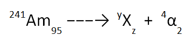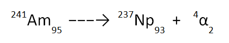 Here is an example; the decay of americium-241 to form a “mystery atom” by the release of an alpha particle, as shown below.