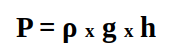The equation that combines these three factors is shown below, where ρ (the Greek letter rho) represents the density of the fluid, g is the gravitational field strength and h is the height (depth) under the fluid’s surface.