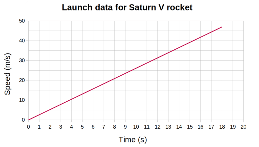By way of example, we will analyse the graph below, which shows the initial movement of a Saturn V rocket as it leaves the launchpad according to data provided in a NASA worksheet.