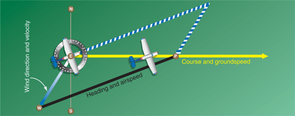 - In diagram B, the wind’s velocity vector has been drawn first and the aircraft’s vector has then been added to it.