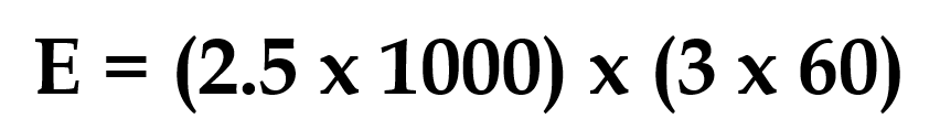 Small values of power are measured in watts (W): larger values are measured in kilowatts (kW) but must always be converted into watts (x1000) before performing any calculations. The energy transferred by a 2.5 kW kettle that takes three minutes to boil its water is calculated as follows;