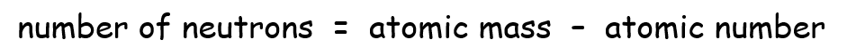 The number of protons and electrons in an atom is given by the atomic number (as explained above) but to determine the number of neutrons we have to do a minor calculation: deduct the atomic number from the atomic mass to get the number of neutrons.