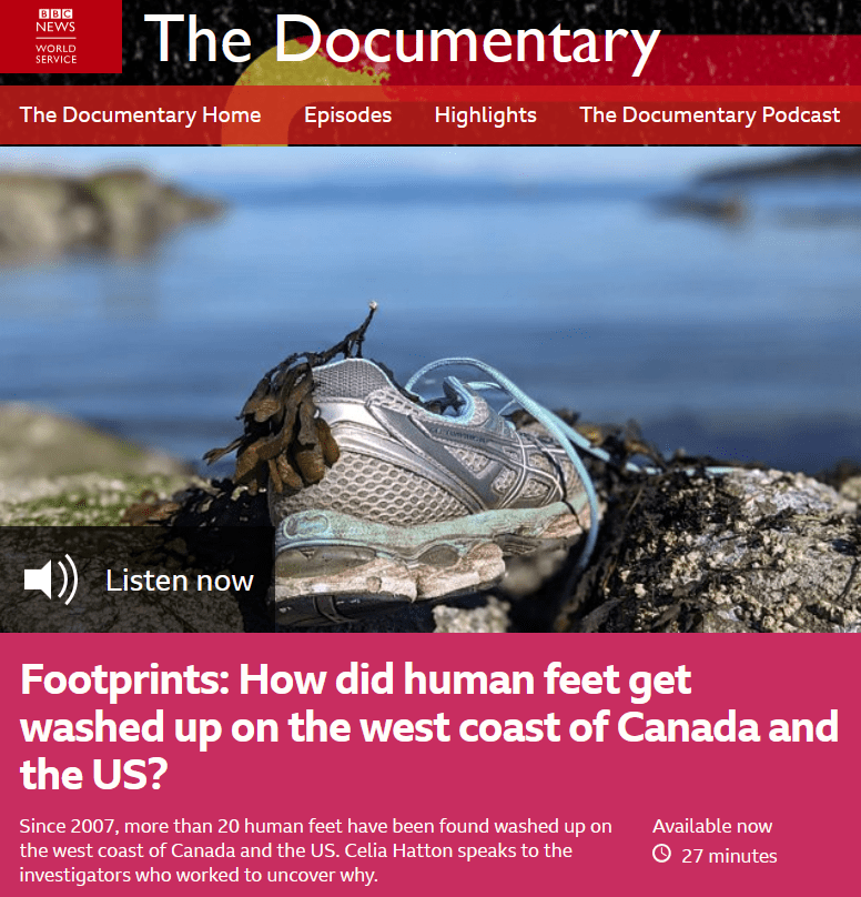 It sounds like an unlikely scientific challenge but a recent BBC Radio 4 program about dismembered feet that have been washed-up on Canadian and US shores is a great puzzle to tax inquisitive brains.