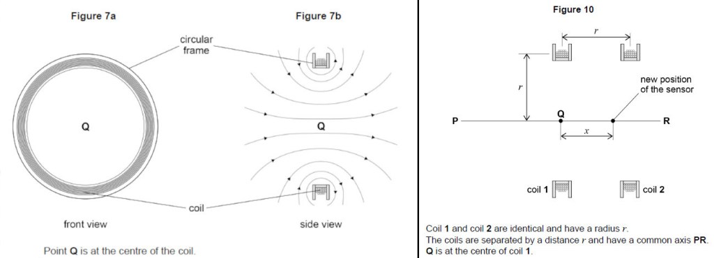 To solve Q3.4 you must first ensure that you understand the diagram given in Figure 10, which is a two-coil arrangement echoing the single-coil version shown earlier in the paper as Figures 7a and 7b. These illustrations are shown together below.
