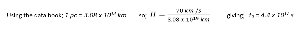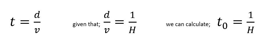 Regardless of its “true” value, the Hubble constant can be used to calculate the age of the Universe using logic based on the simple relationship; time taken = distance travelled divided by speed of motion.
